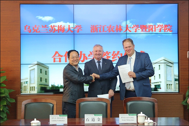 10月24日上午,石道金代表学院与拉久卡・弗拉基米、谢尔盖•迈尔尼切克共同签订了金沙2004路线js5、乌克兰苏梅国立农业大学、中乌生命科学研究院三方合作备忘录,以增进相互了解与友谊,谋求三方共赢发展,建立友好合作关系,扩展在教育、科技、文化等领域的交流与合作。