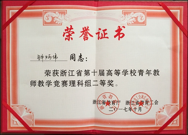 本网讯 10月26日至28日,浙江省第十届高等学校青年教师教学竞赛举行,金沙官网生物环境系钟炳伟老师获得理科组二等奖。公共基础课教学部孟林琦、工程技术系俞伟鹏、经济管理系童小军三位老师获优胜奖。