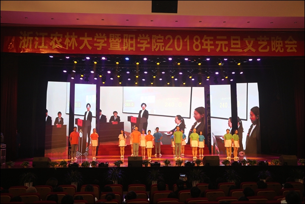副院长张晓优、金松恒,党委副书记高国俊出席晚会,学院全体中层干部、诸暨相关单位负责人和千余名师生代表欢聚一堂、辞旧迎新、共贺新年。晚会以“暨阳,告诉你”为主题,表达暨阳师生立足诸暨、锐意进取、服务发展的豪情壮志、无限憧憬。
