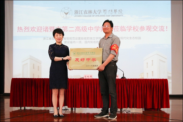 本次活动分为两个阶段:第一阶段以引导学生认识大学、专业为主题,先后进行了“友好中学”签约仪式并授牌、学院基本情况宣讲、观看学院宣传片、教授代表发言、在校生(诸暨二高校友)汇报等活动。第二阶段在大学生志愿者引导下,参观实验室、图书馆、体育中心等校园教学生活设施,开拓中学生视野。