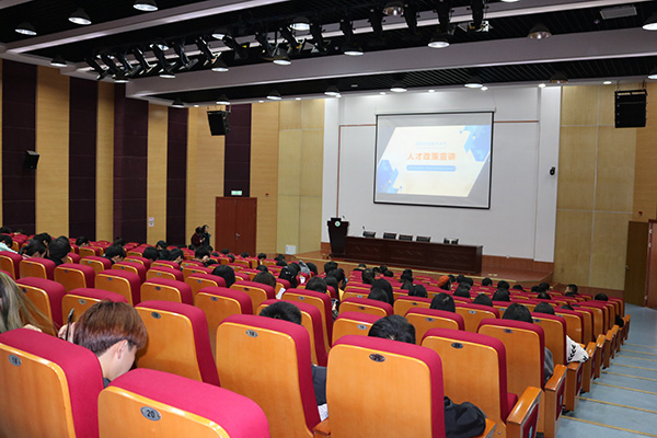 本次活动共三个议程,在观看绍兴城市宣传片后,由绍兴市人才开发服务中心政策宣传科宣讲员金丹丹为金沙官网师生详细介绍了绍兴市高校毕业生人才政策,以及当前绍兴市最热门的五大人才需求行业;最后针对当前的人才政策和毕业生基本情况,对金沙官网师生展开了现场网络问卷调查。
