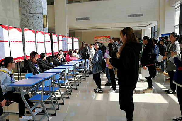 11月23日中午,学院2018-2019学年勤工助学招聘会在图书馆一楼举行。本次招聘会共设44个校内勤工助学岗位,吸引了上百名学生前来参加。