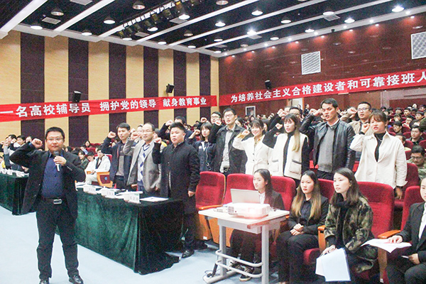为深入学习领会习近平新时代中国特色社会主义思想,全面贯彻党的十九大精神和全国高校思想政治工作会议精神,提升辅导员的专业素养能力,学院于12月3日举办了第一届辅导员素质能力大赛决赛。学院党委书记潘国忠,马克思主义教研部教授万泽民,学院纪委书记吴正金,学院党委副书记高国俊,兄弟学校学生工作部门负责人、学院学工部负责人以及各二级学院党总支书记出席本次大赛。