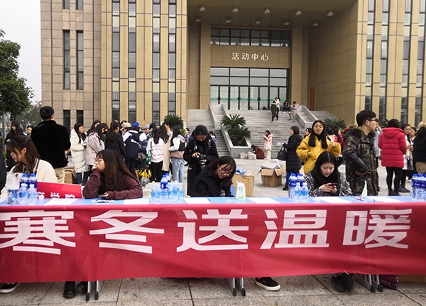 立冬已过,伴随而来的是几许初冬的寒意。12月21日下午,由商学院举办的2018年冬季送温暖的慰问活动在活动中心影剧院前展开。此活动旨在向家庭经济困难的学生送去冬日的问候。