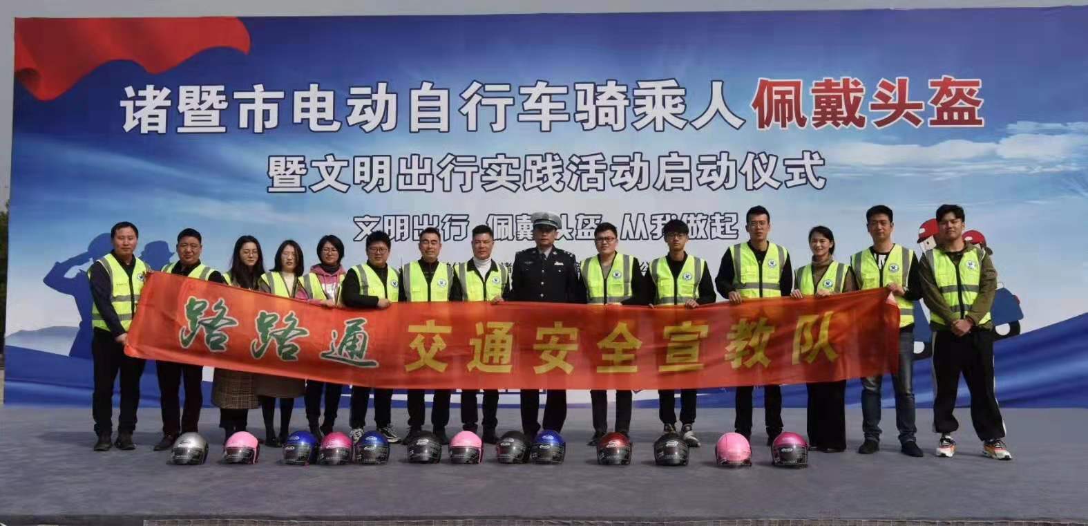 仪式的开展旨在引导市民遵守交通法规,提升骑乘电动自行车佩戴头盔的安全意识,齐心协力打造平安诸暨,争创文明城市。下阶段,诸暨交警将重点整治电动自行车骑乘人员是否佩戴头盔现象,切实提高路面管理的密度、广度和深度。仪式后,人文学院阳光志愿者携手诸暨市路路通交通安全宣教志愿队向市民展开安全佩戴头盔、遵守交通法规的重要性与必要性的普及教育,并分发安全头盔。大学生志愿者们的热心、耐心、专心受到了市民与工作人员的一致认可。