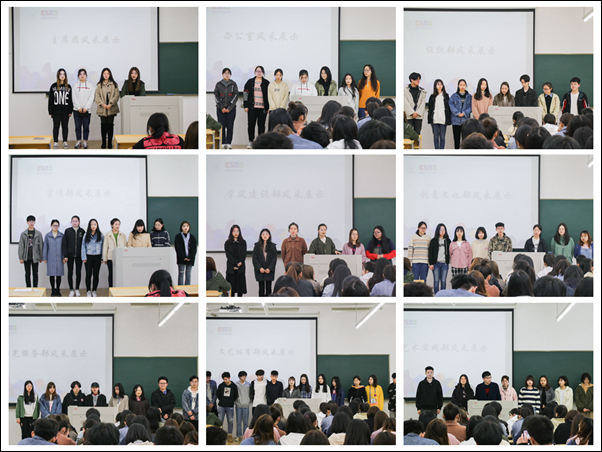 团学主席团、各部门分别做了介绍和风采展示。学生干部代表马钰莹、学生干事代表彭茹茹分别做了表态发言,表示将以饱满的热情和积极的心态,踏踏实实完成每一项工作任务;以高度的责任心和使命感履职尽责,全心全力为同学做好服务;以创新的思维和精神锐意进取,众志成城不断提高工作效率,为促进团学工作开展、服务广大同学做出积极的贡献。