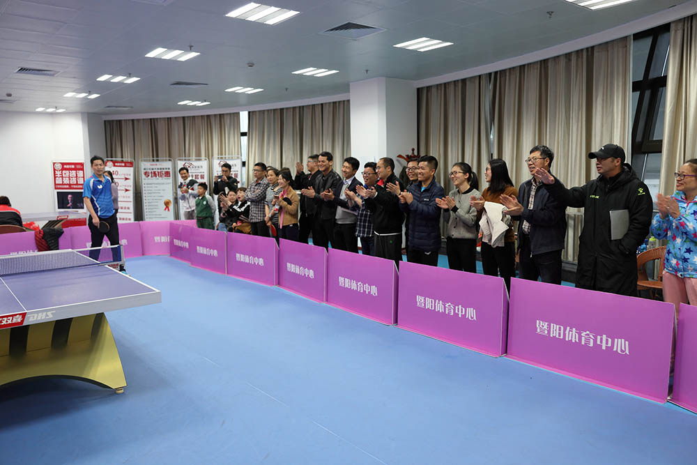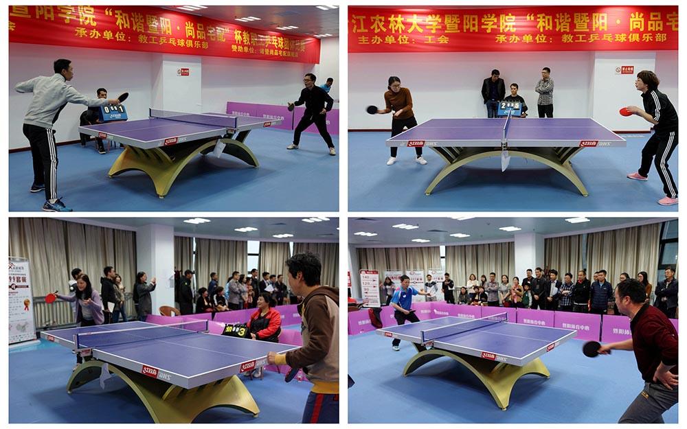 本网讯 4月10日下午,体育中心网球馆二楼乒乓球室欢声笑语,掌声呐喊声此起彼伏,热闹非凡。学院第一届教职工乒乓球团体比赛决赛正在体育馆精彩上演。