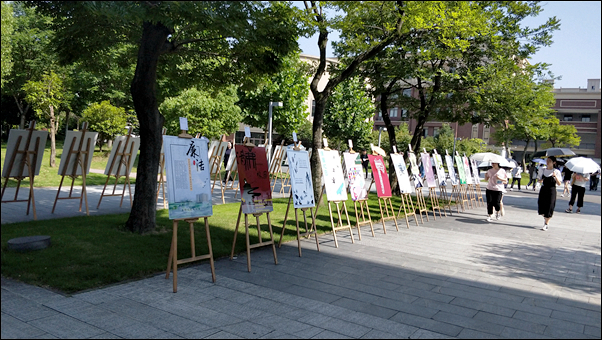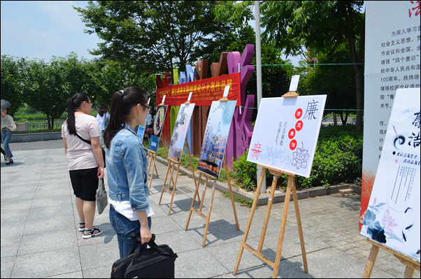 6月5日、6日,入围作品相继在理工1号楼和人文6号楼楼下展出,吸引了众多师生驻足观看。