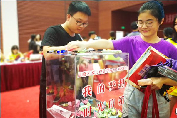 时间如白驹过隙,大学时光转眼即逝,为让新生们尽早尽快地做好职业生涯规划,确定奋斗的目标和努力的方向,在今年的迎新活动中,学院组织开展了“我的梦想”时光信箱活动。新生在完成报到流程后,在活动现场写下了“我的梦想”,折成自己喜欢的形状,收藏在“时光信箱”中。这个信箱会在迎新之后封存由学院保管,在他们毕业的时候再重新打开,看看毕业时的你是否完成了当初的梦想,实现了当初的目标。