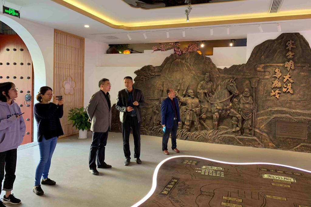 在梅城镇,调研组一行实地参观了梅城镇美丽城镇建设现状,我校96届校友、镇长沈小来向调研组介绍梅城镇的历史沿革、区位、产业结构和三江口片区规划建设情况,同时,也欢迎母校来梅城开展美丽乡村规划和美丽城镇品牌宣推。