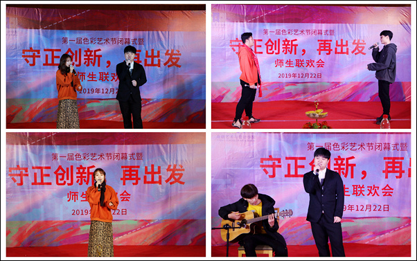 在全体师生合唱《难忘今宵》中,联欢会圆满落下帷幕。据悉,晨晓艺术与设计学院第一届色彩艺术节以“青春建功新时代 争做艺术追梦人”为主题,围绕“色彩暨阳 艺术殿堂”“艺术大咖 价值引领”“色彩世界 阳光育人”“‘小彩旗’ 阳光服务”等方面开展了一系列艺术文化活动,为同学们搭建展示艺术才华的舞台,提供锻炼自我成长的平台,取得了一定的成绩,也获得了学院广大师生的认可和赞许。展望2020,全院师生将站在崭新的起点,守正创新再出发,不忘初心,奋力追梦,谱写学院各项事业发展新篇章。