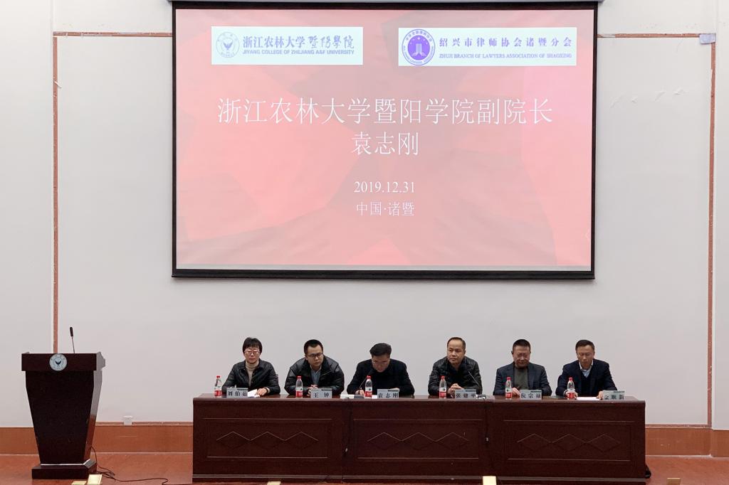 12月31日下午,学院与绍兴市律师协会诸暨分会战略合作签约仪式在图书馆报告厅举行。副院长袁志刚、绍兴市律师协会诸暨分会会长金顺新代表双方签订合作协议。诸暨市司法局局长张建平、副局长倪宗禄出席仪式,学院社会合作部、人文学院负责人,诸暨市司法局相关科室负责人、律师代表及学院100余名师生代表参加签约仪式。