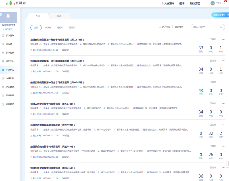 选用了智慧树直播与钉钉视频的方式。在学生自主学习阶段使用智慧树平台,智慧树平台有详细的学情数据,有助于教师能帮助学生归纳总结学习的重难点,并在课堂中有针对性的调整直播的教学策略。在翻转课堂时使用钉钉视频会议,视频能与学生“见面”,可以根据学生的练习情况“面对面”进行语音指导与动作示范,弥补了智慧树直播只能语音直播的缺陷,确保体育线上课堂的教学效果。