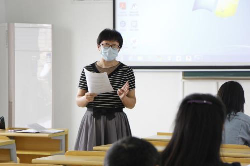 刘伯茹首先介绍了金沙官网线下教学疫情防控方案及相关流程,随机抽问在场老师。随后线下课堂教学疫情防控演练正式开始,演练主要分为三个部分:一、课前准备。任课教师提前十分钟到达教室,打开门窗,对教室进行通风;教师组织学生间隔1米有序进教室,按照提前规定好的座位就坐;落坐后,教师及班级负责人清点上课人数,做好出勤登记。二、疑似疫情。教师按照教学进度讲授课程,期间一个学生出现身体不适症状,报告任课教师。教师立即安抚学生,并电话联系该生辅导员,将这名学生送到就近临时隔离区人文1109后回到教室上课,等待检测结果,根据检测结果作不同后续处置。三、错峰下课。线下课程结束后,根据学院错峰下课要求,让学生通过楼梯井然有序赶往下一课堂或其它目的地,减少人员聚集。