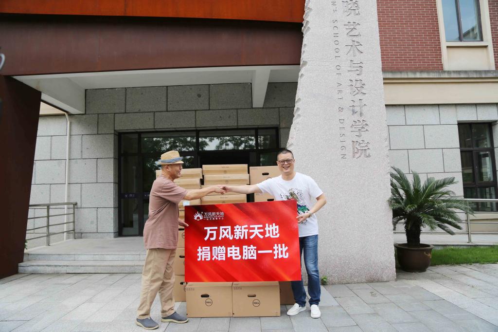 据悉,万风新天地董事长郭飞霞女士大力支持学院艺术设计专业人才培养,在了解到晨晓艺术与设计学院缺少教学设备的困难后,毫不犹豫地提出要捐赠物资,解决学院燃眉之急。晨晓院长表示,学院致力于打造应用型创业型艺术人才,需要立足地方,融入企业,深化校企合作新起点,加强产教融合新模式,真正将学院的人才运用到服务地方社会经济中去,实现人才培养的真正价值。现阶段,他正带领晨晓艺术与设计学院的师生开展当地新农村建设设计项目,珍珠生活项目等,他希望学院的师生能够反哺当地,为诸暨的社会经济做出贡献,真正打造色彩诸暨,文化暨阳的全新风貌。