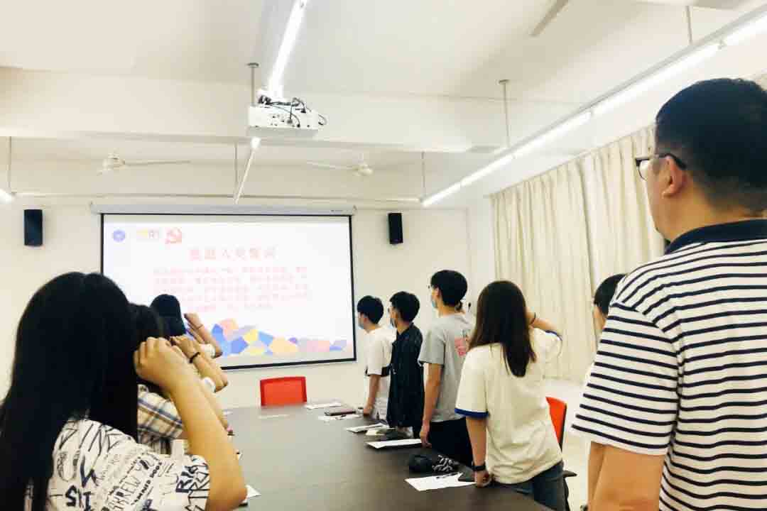全体毕业生党员在优秀共产党员范越嘉同志的领誓下重温入党誓词。