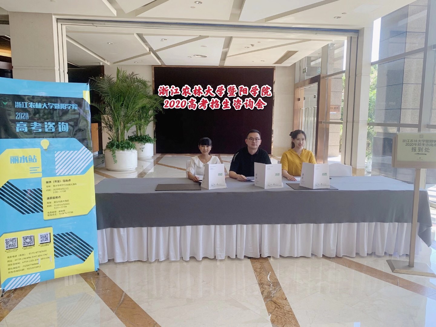 在8月22日-24日浙江省二段志愿填报前夕,各二级学院纷纷组织由专业负责人、教师代表、学生等为代表的招生宣传队伍分赴杭州、温州、宁波、嘉兴、衢州、丽水等省内各地市开展招生政策宣讲和报考咨询。工作开展前,招生办公室组织了专门的业务培训,就高招录取政策、招生宣传要点与亮点、工作方法和咨询技巧等方面进行了全面培训。在各宣传点,师生代表们耐心细致解答考生、家长关注的相关报考问题,准确、全面地为有志报考我校的考生提供信息,取得了良好的咨询效果。