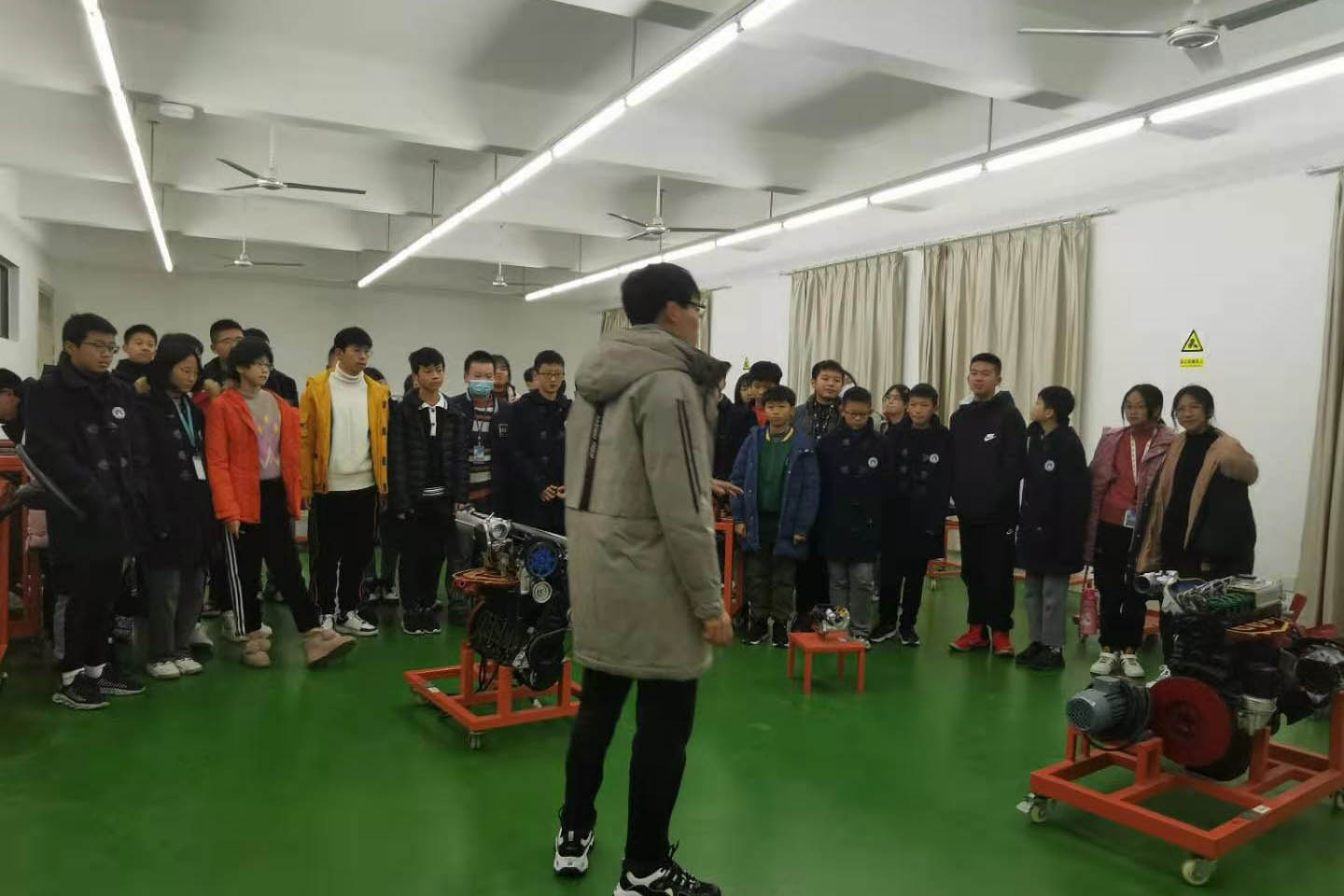 2020年12月15日下午,荣怀中学50余名学生来到实验教学中心开展科技探索之旅活动。同学们先后走进电子显微镜实验室和汽车构造实验室,各实验室负责老师向同学们介绍了所在实验室的特点、功能、以及可支持开展的实验项目。