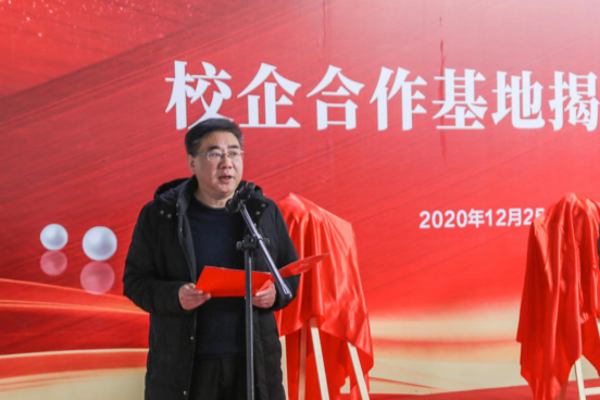 仪式上,校、地、行、企各方代表为校企合作基地揭牌。