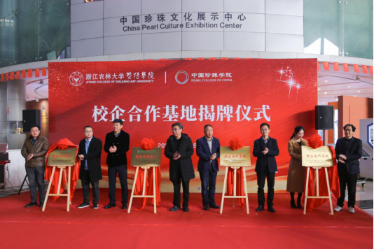 12月25日上午,中国珍珠学院校企合作基地揭牌仪式在诸暨华东国际珠宝城举行。金沙2004路线js5副院长袁志刚、诸暨市山下湖镇党委副书记蔡鲁晟,校企合作企业代表出席了仪式。学院相关职能部门、二级学院负责人,中国珍珠学院产业班全体师生参加了揭牌仪式。