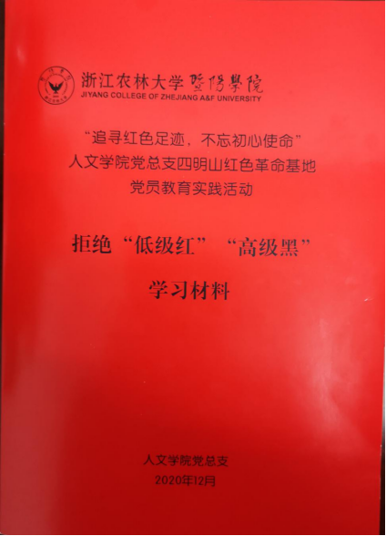 下午,全体党员来到了具有“浙东小延安”之称的梁弄县,在梁弄红色长廊,人文学院党总支书记宣王威带着全体党员同志学习了人文学院党总支特编的《拒绝“低级红”“高级黑”》的学习材料。 通过材料的学习,参会党员纷纷表示在开展党员组织工作过程中要坚决杜绝“低级红”“高级黑”现象,不断增强政治敏锐性和政治鉴别力,强化忧患意识、风险意识,对容易诱发政治问题特别是重大突发事件的敏感因素、苗头性倾向性问题,保持高度警惕,做到眼睛亮、见事早、行动快,绝不提供“低级红”“高级黑”滋生的“空间”“土壤”和“温床”。