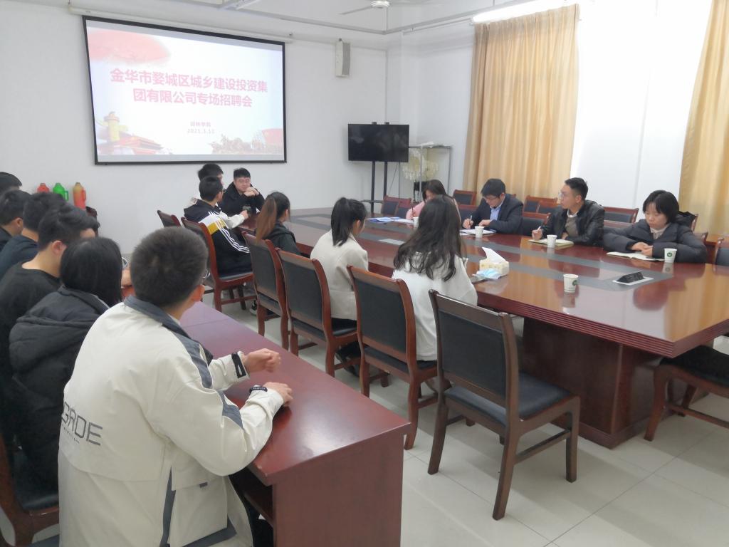 为进一步拓宽金沙官网毕业生就业渠道,3月12日,园林学院在理工三号楼学院会议室举办面向毕业生的双向选择招聘会。招聘会由园林学院党总支书记张佩成主持。金华市婺城区城乡建设投资集团有限公司及其下属企业参与本次招聘。