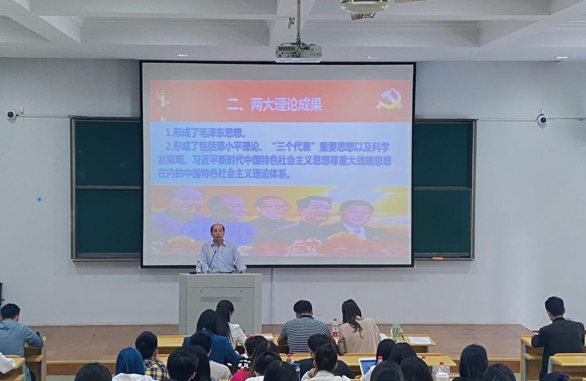 红绿讲坛第一讲邀请学院马克思主义理论学院教授万泽民作主讲嘉宾。万教授围绕“一条主线”、“两大理论成果”、“三座历史里程碑”和“四度伟大辉煌”等四个方面,激情澎湃地讲述了中国共产党的百年革命史、奋斗史、辉煌史,并从理论高度深刻阐明了《中国共产党为什么“能”》《马克思主义为什么“行”》《中国特色社会主义为什么“好”》。万教授的党课主题鲜明、重点突出、深入浅出、妙趣横生,具有很强的指导性、针对性、启发性和趣味性,使现场师生受益匪浅。