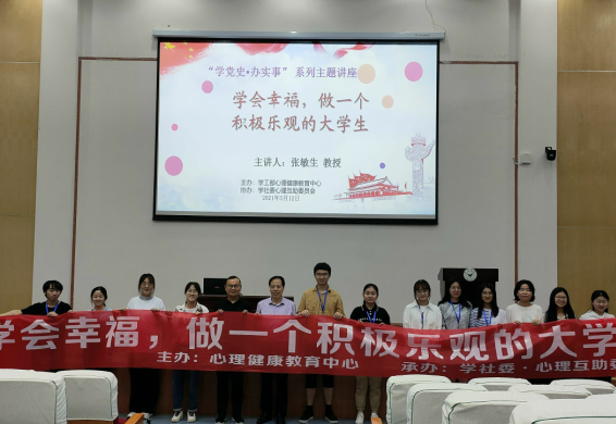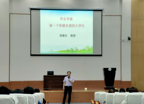 “情商比智商重要,成长比成功重要,健康比分数重要,幸福比优秀重要”。5月12日晚,“学会幸福,做一个积极乐观的大学生”主题讲座在图书馆报告厅顺利举办。此次讲座邀请浙江农林大学张敏生教授主讲,学工部心理健康教育中心主办,学社委心理互助委员会协办,近200名在校生代表参加。