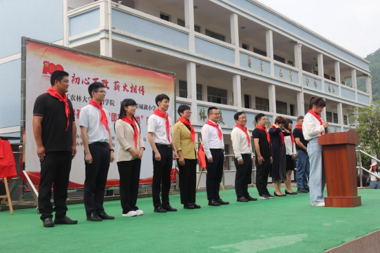 活动伊始,学生代表为到场嘉宾戴上红领巾并举行升旗仪式。
