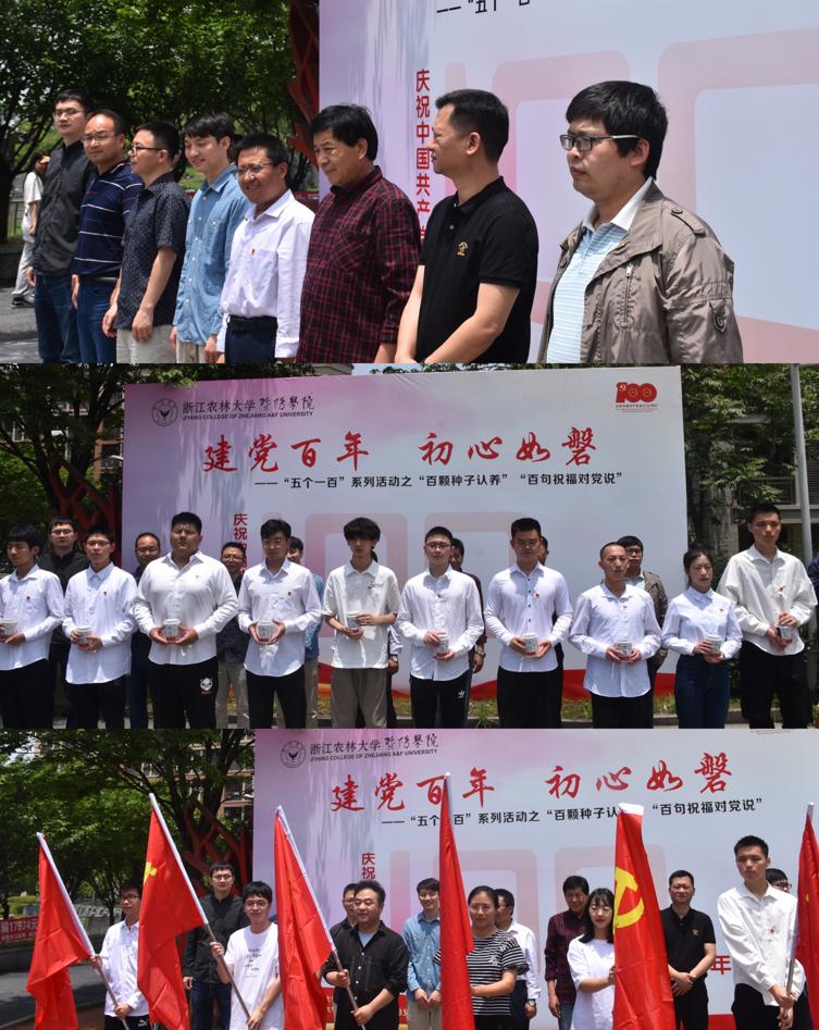 为庆祝中国共产党成立100周年,加强广大师生对建党百年光辉历史的学习与认识,坚定理想信念,牢记初心使命,传承红色基因,赓续精神血脉,学院于5月21日在食堂门口小广场举办“建党百年 初心如磐”系列活动之“百颗种子认养”“百句祝福对党说”,本次活动由园林学院党总支承办。金沙2004路线js5党委副书记高国俊、资深教授李根有出席本次活动,各二级学院党总支书记、副书记、支部书记以及师生党员代表参加。