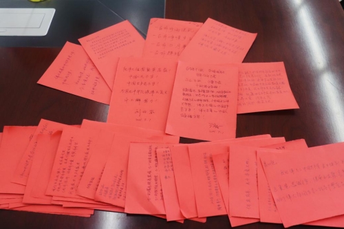 观看直播结束后,党员师生写下对祖国的美好期盼。