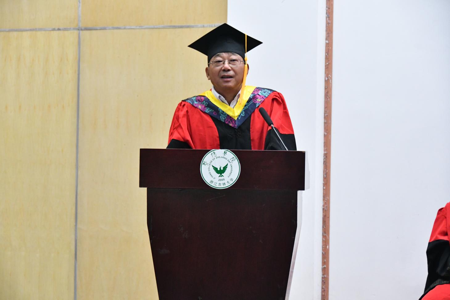 典礼上,生物环境学院院长金首文致辞。他代表生物环境学院向2021届本科毕业生表示祝贺。勉励毕业生:第一,要永不放弃学习,保持学习是亘古不变的真理;第二,无论何时何地都要拥抱乐观豁达的人生态度;第三,牢记“一个脚印一个坑”的做人原则,用心做事,真诚做人。衷心祝福毕业生们在未来大展宏图,前程似锦!也时刻期盼着校友们常回母校看看!