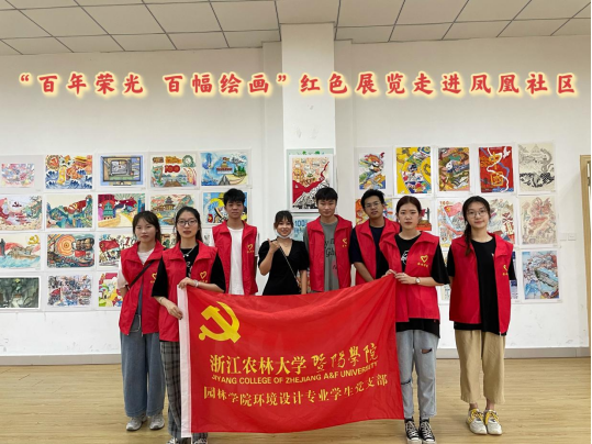 7月3日,凤凰社区“花儿朵朵 幸福家园”暑期游园会在安平小区和合和文化家园举办,本次活动以各类儿童便民服务和儿童文明实践的形式呈现。浙江农林大学园林学院特设文明实践类“建党百年”展位,将“百年荣光 百幅绘画”绘画展带进凤凰社区,讲解百年党史,传播红色文化。