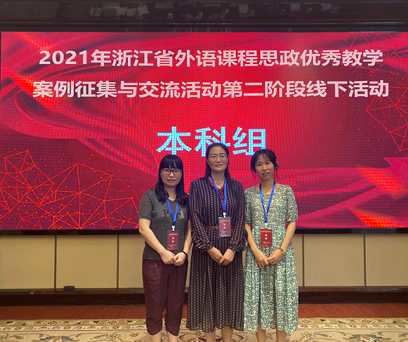2021年9月25日,浙江省外语课程思政优秀教学案例征集与交流活动第二阶段线下活动在杭州新侨饭店顺利召开,此次活动由浙江省高等教育学会大学外语分会主办,来自全省二十多所院校的教师踊跃参加,分享优秀课程思政教学案例。人文学院外语系教师何芳、李红莉、郭晋前往现场进行交流观摩。