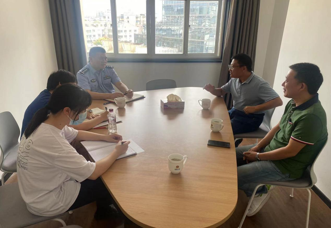 高国俊向诸暨市公安局相关负责人介绍了金沙官网的安全稳定基本情况,重点对政保和反诈工作进行了详细的说明,并对诸暨市公安局长期以来对维护金沙官网周边稳定、守护平安校园工作中所做的贡献表示诚挚的谢意。他指出,学院将进一步做好意识形态管理、预防电信网络诈骗、加强校园治安交通安全等工作,完善警校联动工作机制,维护好校园的安全稳定,努力形成共建合作的长效机制。