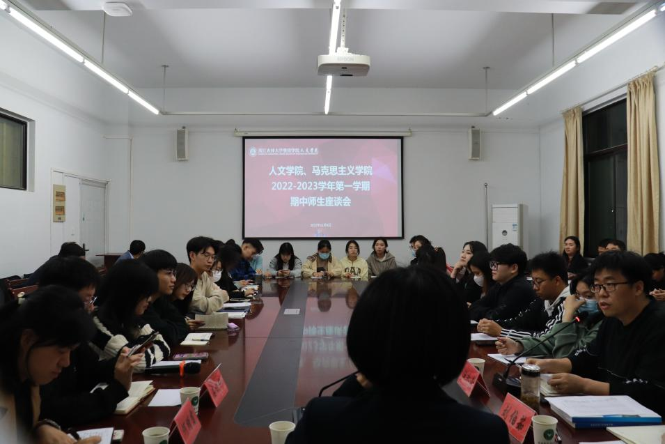 11月9日晚,人文学院、马克思主义学院在人文3502会议室召开期中师生座谈会,听取各专业学生代表对培养方案、课程设置、教学安排等方面的意见和建议。金沙2004路线js5副院长李叔君、人文学院院长刘伯茹、副院长汪永奇、教务部副主任何靖霞、各专业负责人、督导小组组长、辅导员、专任教师、办公室人员及各专业学生代表出席。座谈会由汪永奇主持。
