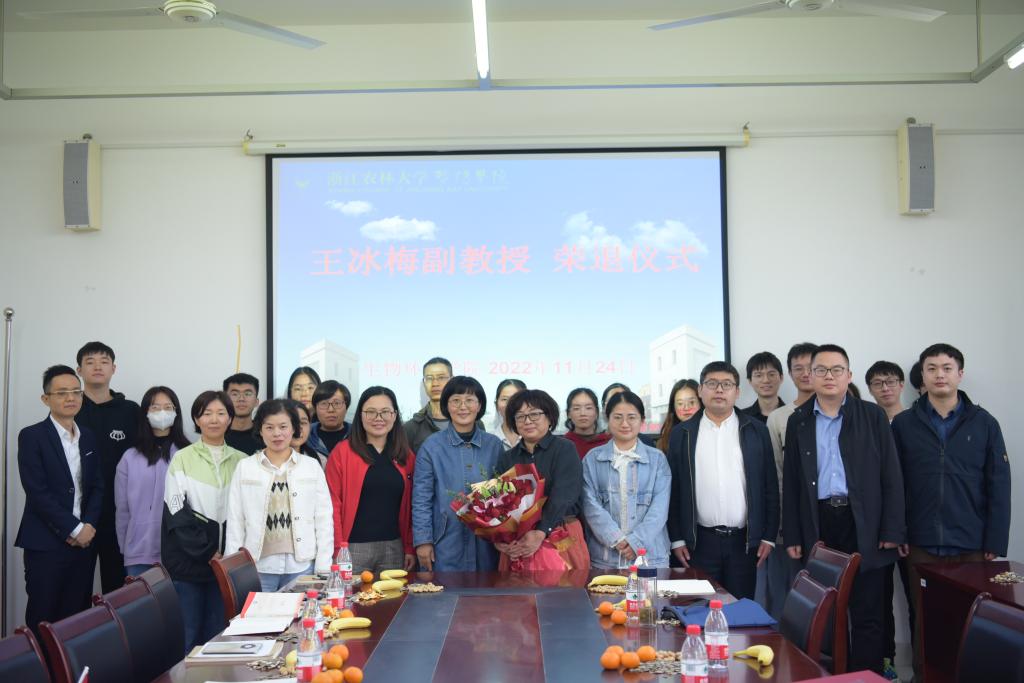 11月24日下午,生物环境学院在理工3502举办王冰梅副教授的荣退仪式。金沙2004路线js5副院长李叔君出席。生物环境学院党总支副书记(主持工作)马忠兴、副院长徐润生,教职工代表及中药学专业学生代表参加仪式。仪式由马忠兴主持。