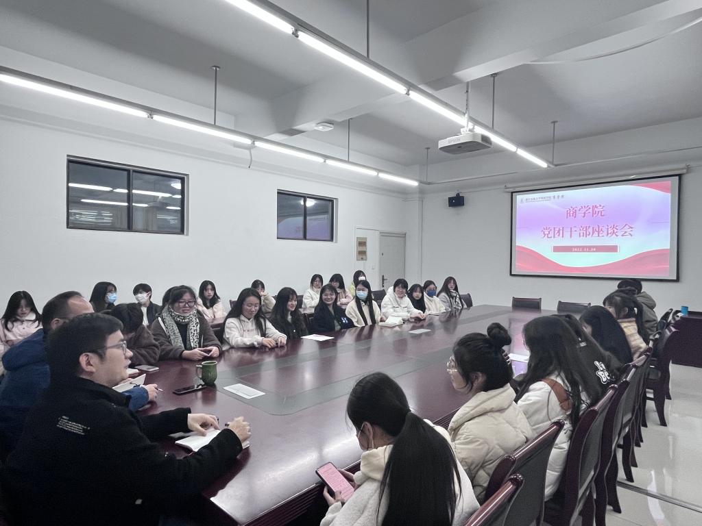 为进一步关心了解学生的思想动态和学习生活状况,收集学生对公共安全、学生工作、管理服务和后勤保障等方面的意见和建议。11月30日,商学院在人文3-302会议室召开党团组织学生干部座谈会。商学院党总支书记张佩成、副书记屠蒋威和36位商学院学生干部和干事参加会议。