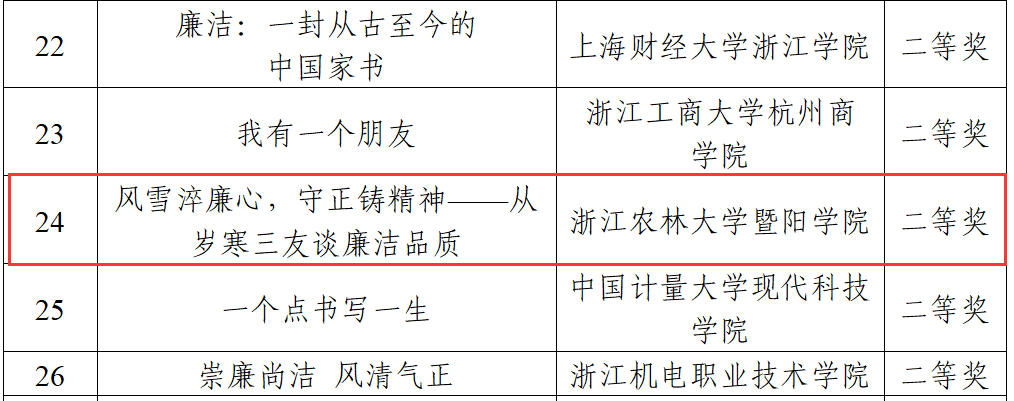 近日,省委教育工委公布全省教育系统廉洁教育系列活动评选结果,学院报送的作品《风雪淬廉心,守正铸精神——从岁寒三友谈廉洁品质》荣获征文类二等奖。这是金沙官网自推进落实廉洁文化建设以来首次获得省级荣誉。