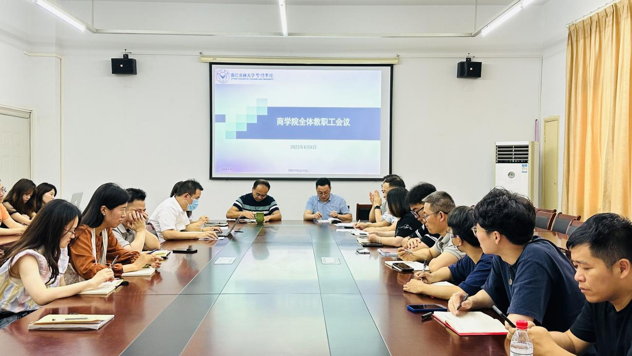 6月8日,商学院召开全体教职工会议,布置落实近期毕业生就业工作、教育教学、安全稳定以及期末工作,商学院院长何红光、党总支书记张佩成参加会议,会议由商学院副院长周琼主持。