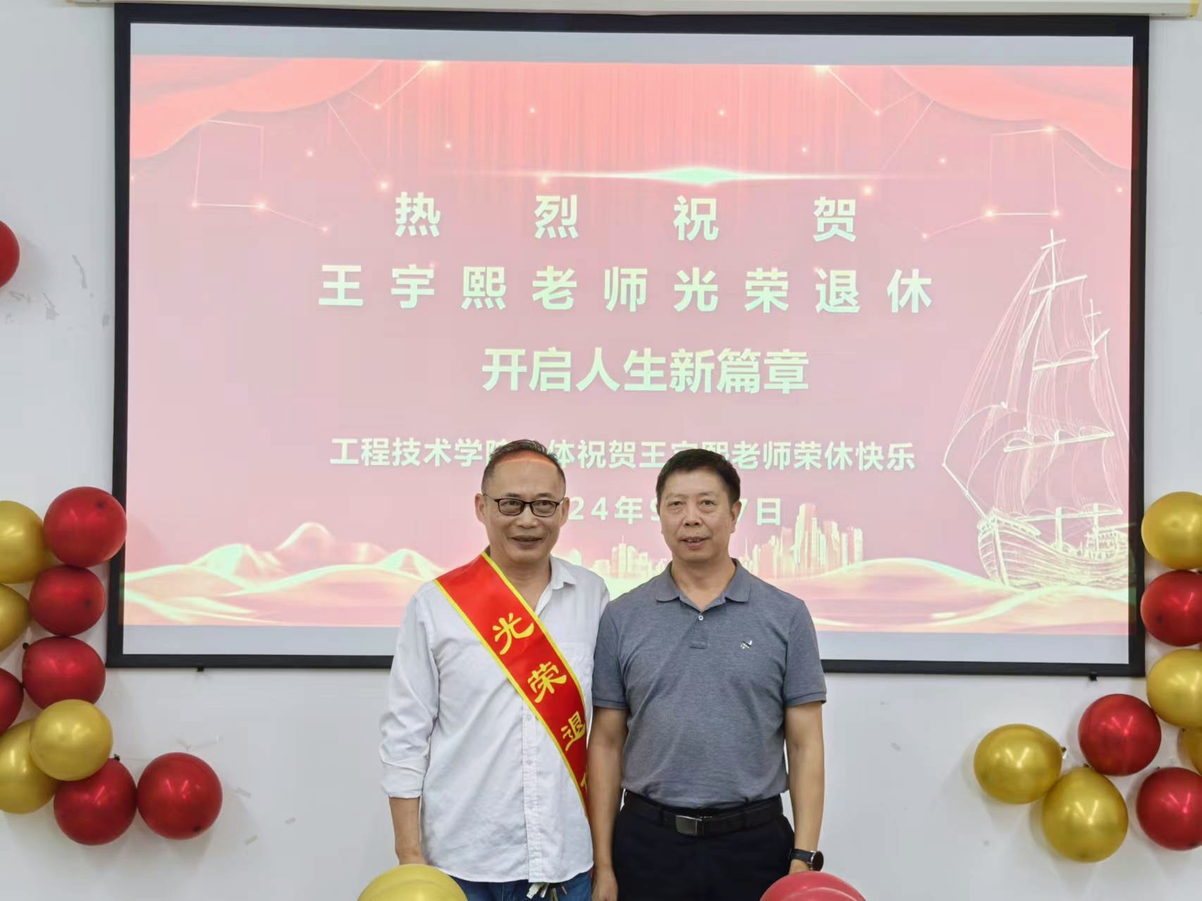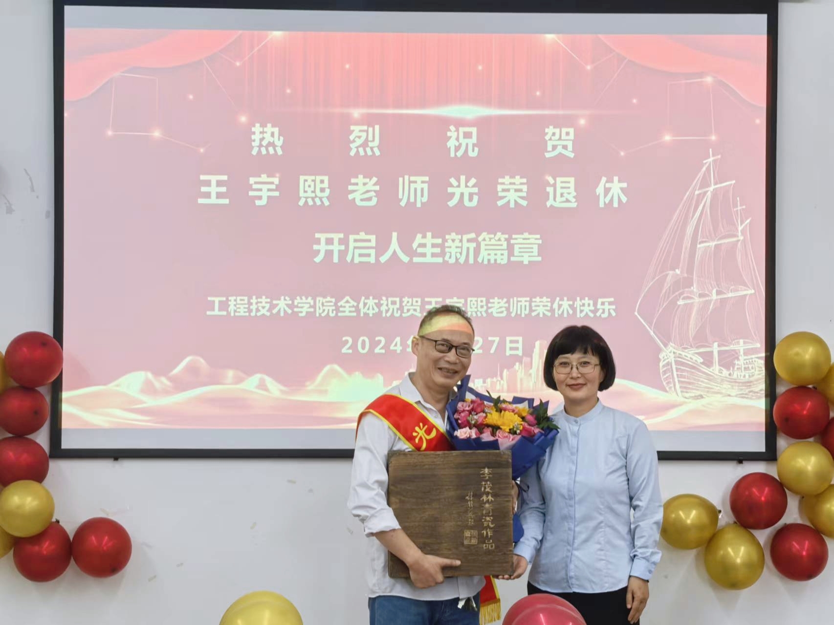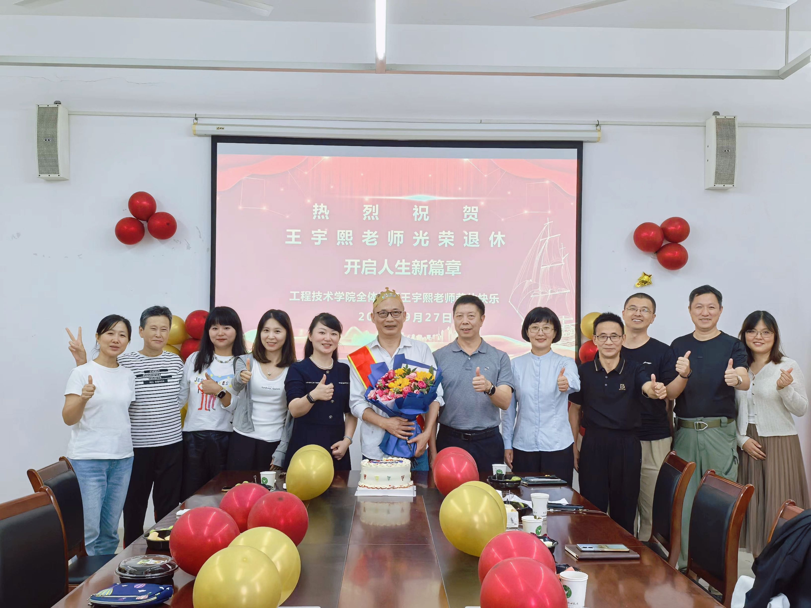 9月27日,工程技术学院在理工3402会议室为其举办了温馨而隆重的荣休仪式。学院院长徐光辉、党委书记洪昀、党委副书记李叔君及工程技术学院班子、相关专业老师们齐聚一堂,共同祝贺工程技术学院教师王宇熙光荣退休。