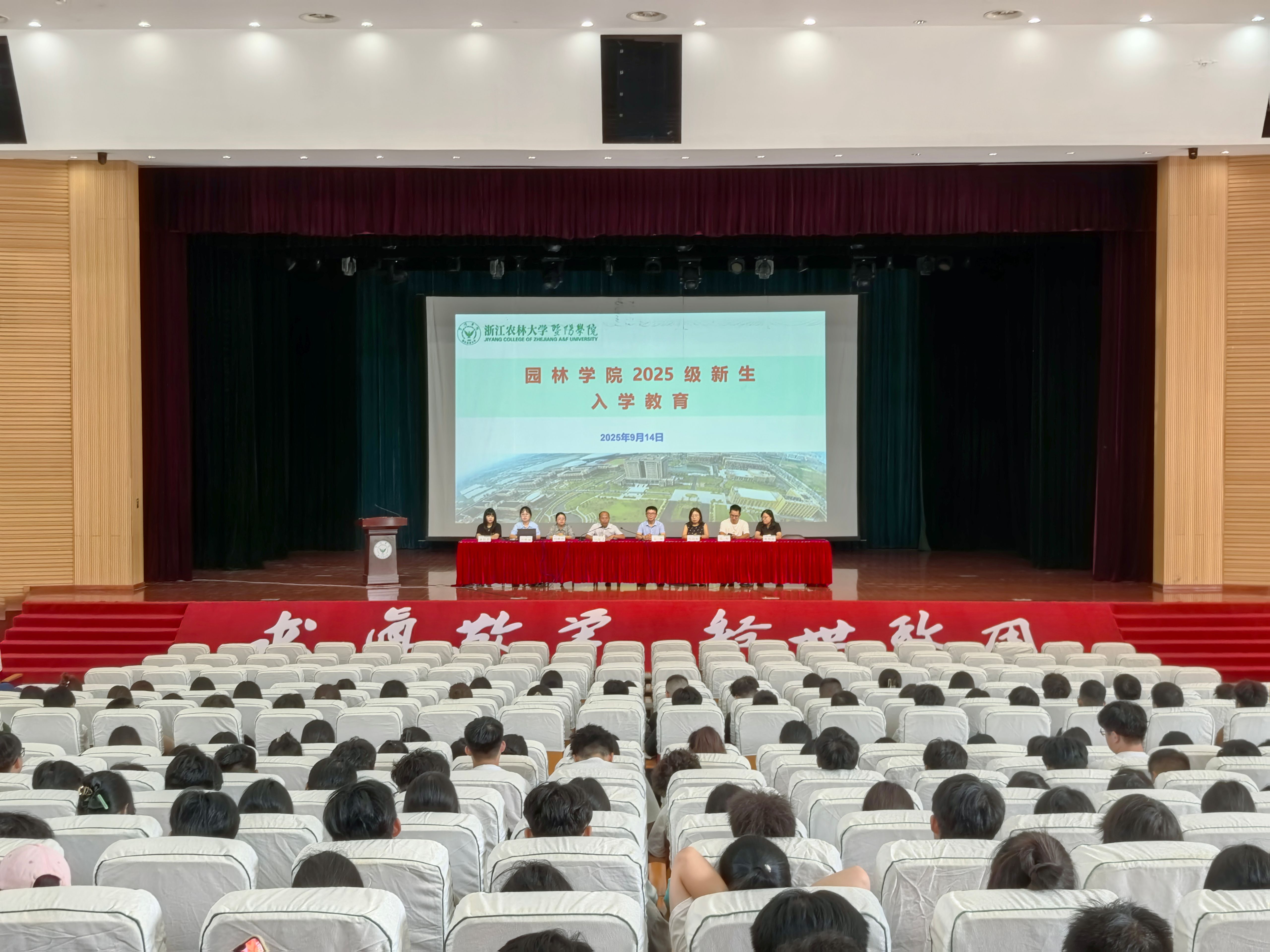 9月14日,园林学院2025级新生入学教育大会在活动中心举行。园林学院院长白尚斌、党总支书记徐涌、各专业负责人、新生辅导员、教学秘书和园林学院全体2025级新生参加会议。