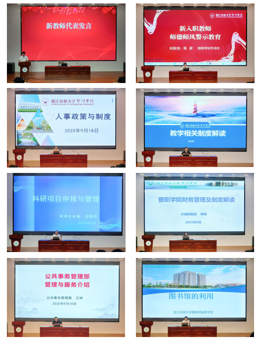 纪检室、人力资源部、教务部、科研管理部、计划财务部、公共事务管理部、图书馆等部门负责人,围绕教职工师德师风建设、聘用管理、薪酬福利政策、教学任务衔接、科研项目申报、财务报销规范、后勤保障服务、图书资源利用等关键工作,开展“一站式”政策宣讲为新教师快速进入工作状态、高效开展教学科研工作提供清晰指引。