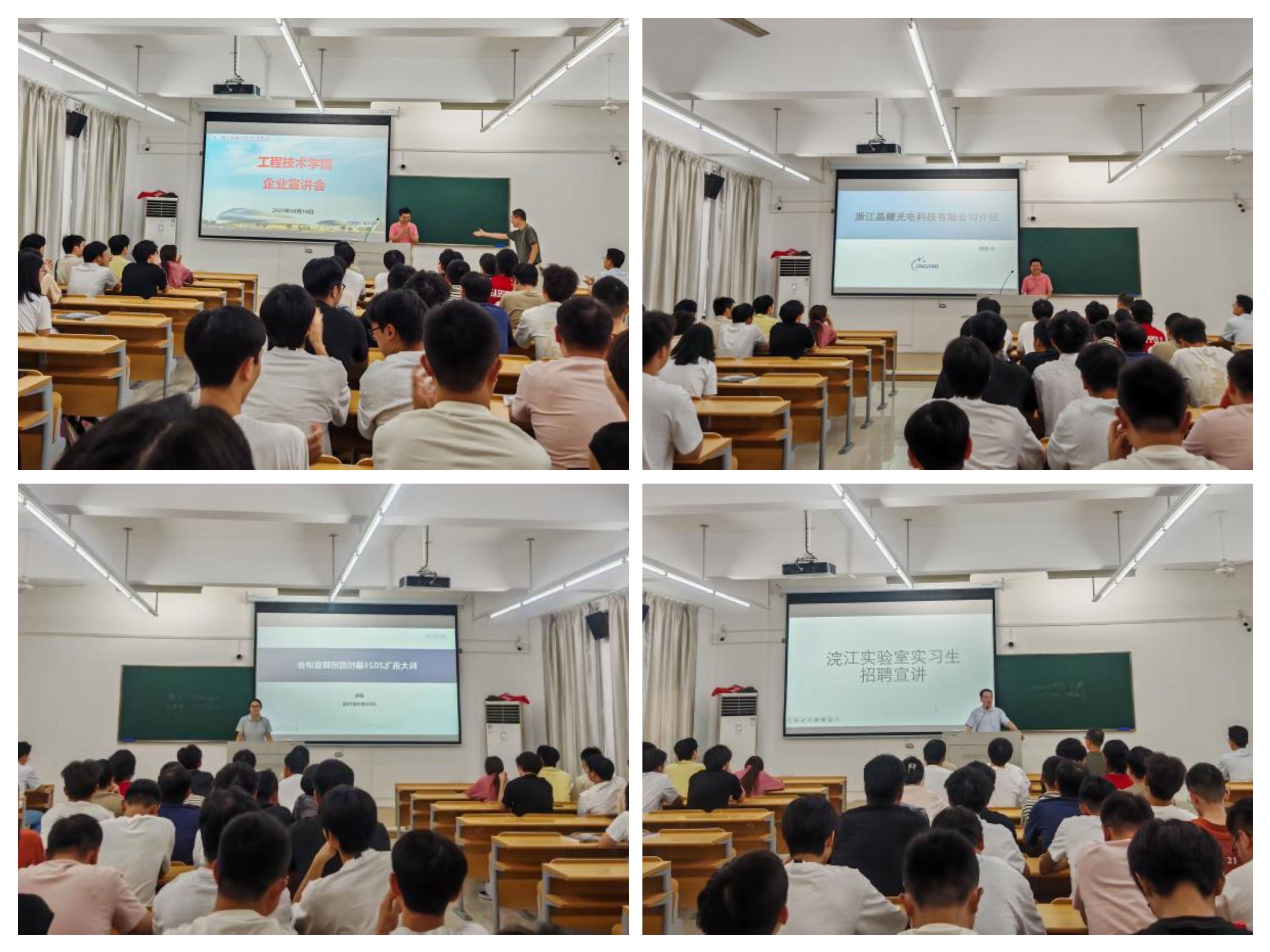 为深化校企合作、拓宽学生实习实训渠道,9月19日,工程技术学院在理工2411举办2026届毕业生职业实训企业宣讲会。科大讯飞股份有限公司、浣江实验室、浙江晶耀光电科技有限公司等企业代表受邀参与宣讲。工程技术学院副院长,各专业团队负责人以及2026届毕业生学生代表共同参与了宣讲会。