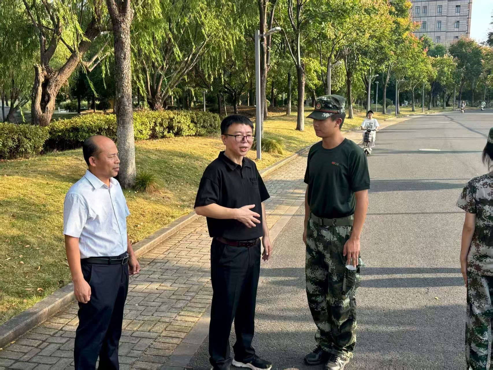 9月22日,园林学院院长白尚斌、党总支书记徐涌、新生辅导员一行前往军训场地,看望慰问园林学院正在军训的2025级学生。