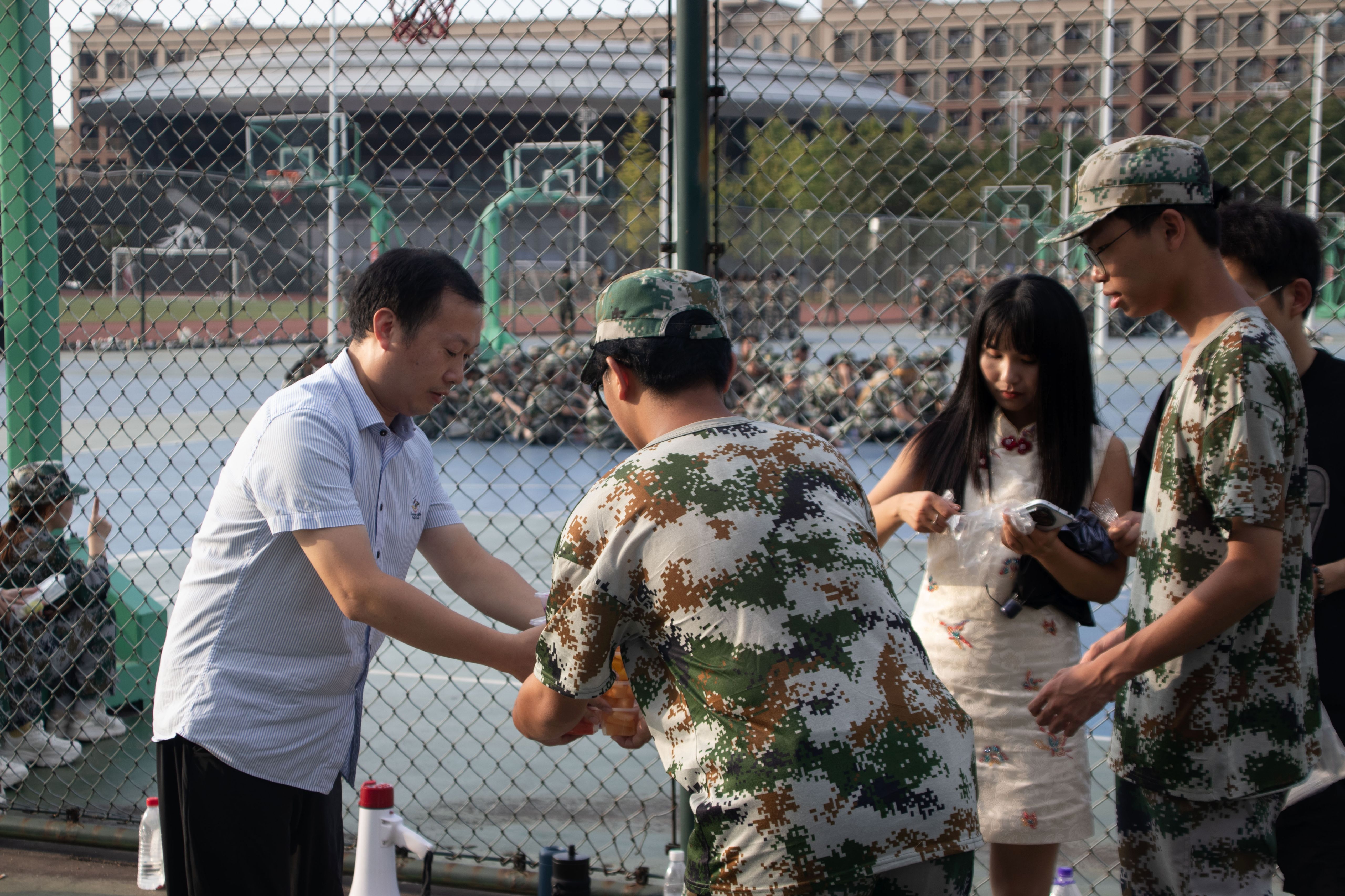 晨晓艺术与设计学院为各连队分发了解暑慰问品。同学们双手接过慰问品,脸上洋溢着感动与喜悦,纷纷对教师们的关怀表达感谢。