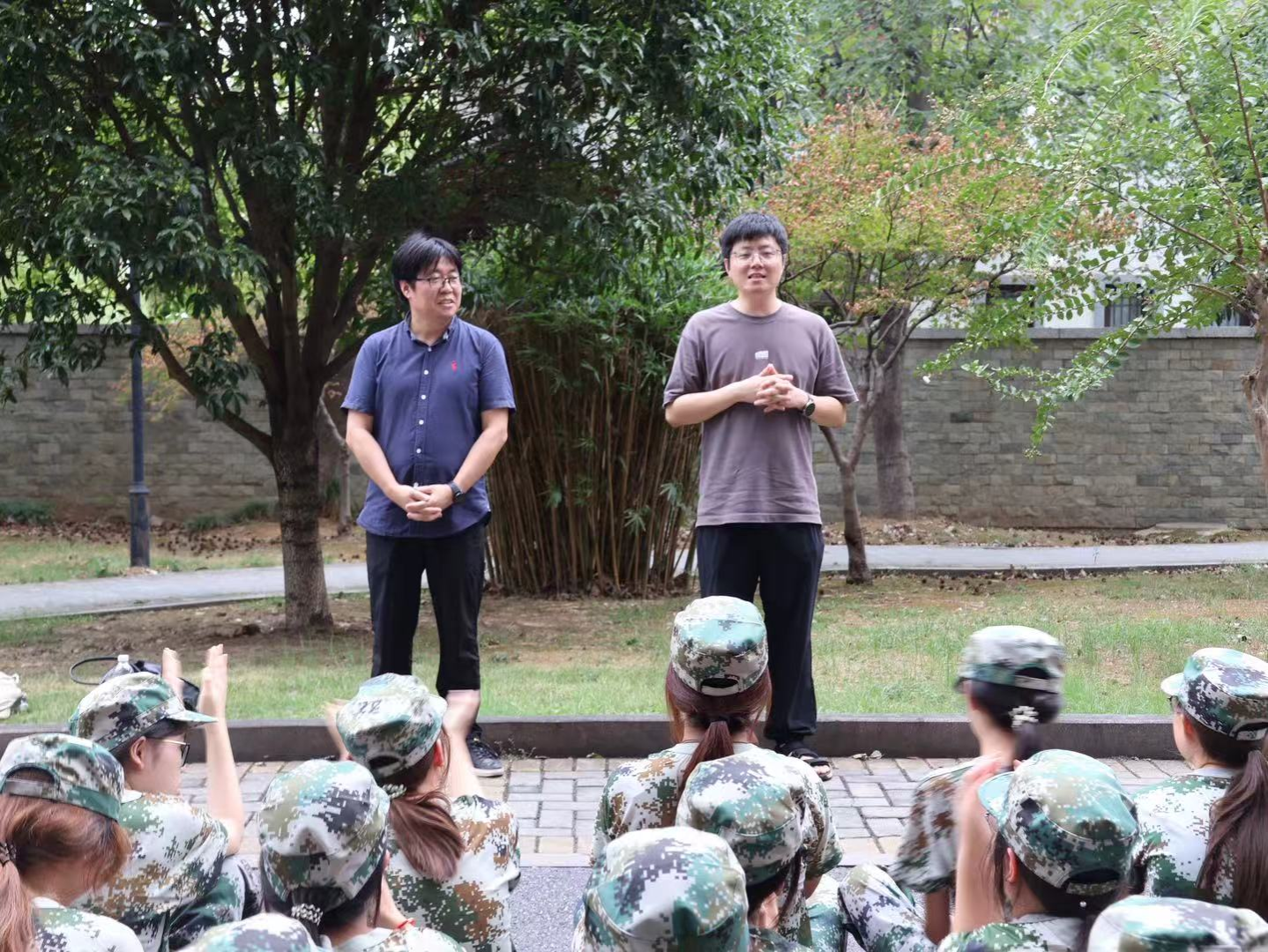 人文学院、马克思主义学院党总支副书记对同学们展现出的良好状态细心叮嘱同学们在刻苦训练的同时,注意科学作息,注意身体,劳逸结合,特别是在季节交替之际,要及时增减衣物,预防感冒。
