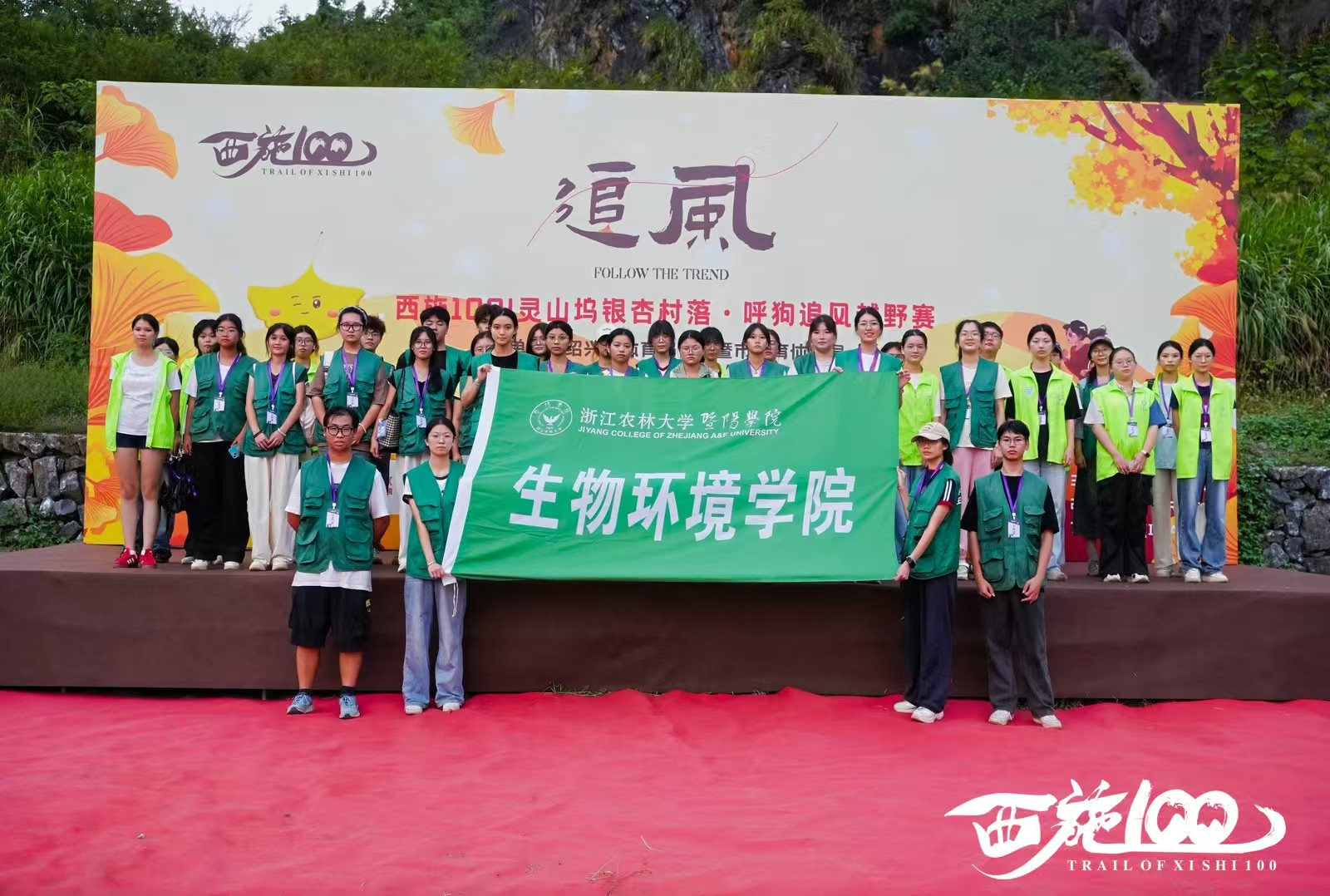 9月27日,西施100|灵山坞银杏村落·呼狗追风越野赛顺利开赛。来自生物环境学院的一批“绿马甲”志愿者,以专业、细致、温暖的服务,成为赛道旁最动人的风景。