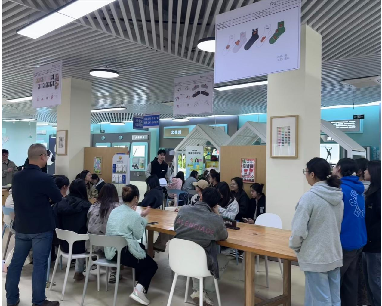 11月4日,中国大唐袜艺学院携手商学院市场营销专业师生,在袜艺中心共同开展了一场以袜艺与袜业为主题的沉浸式沙龙活动。本次活动结合市场营销专业的综合实习内容,旨在拓展学生对袜艺产业的认知与理解。