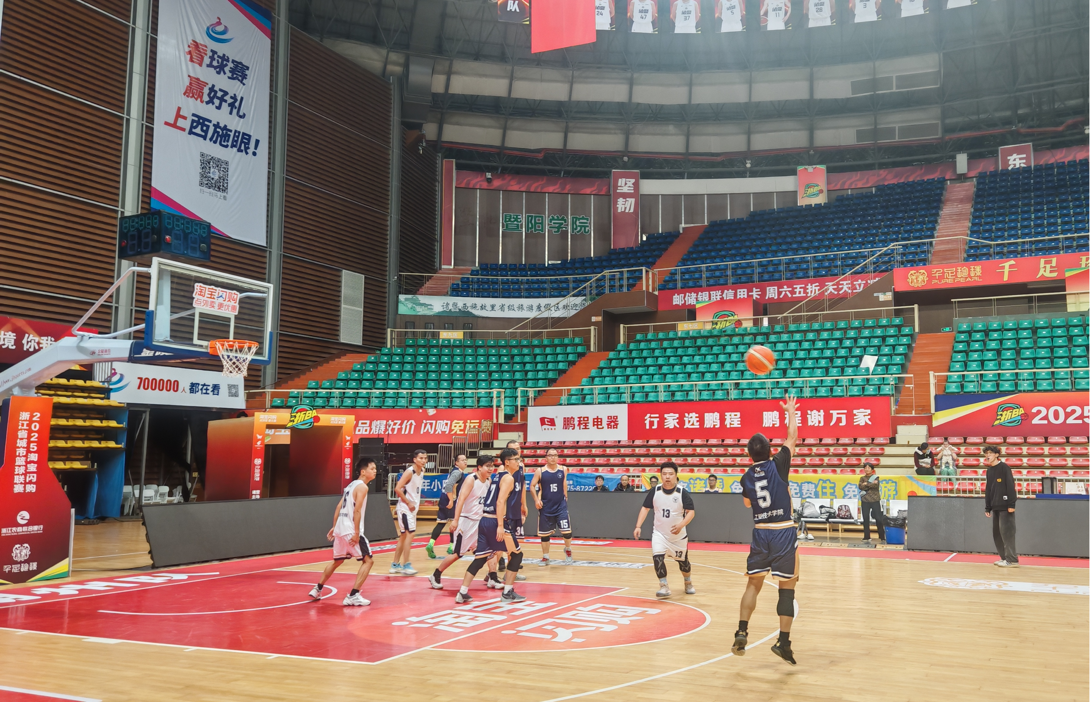 随着裁判一声哨响,比赛正式拉开帷幕。双方球员迅速进入状态,你争我夺、攻守交替,节奏紧凑、对抗激烈,精彩场面接连上演,现场观众发出阵阵欢呼喝彩。比赛过程中,企业代表队展现出强劲的爆发力,多次抢下关键篮板;工程技术学院代表队则凭借默契的配合与丰富的实战经验,在投篮命中率和防守组织上占据明显优势。